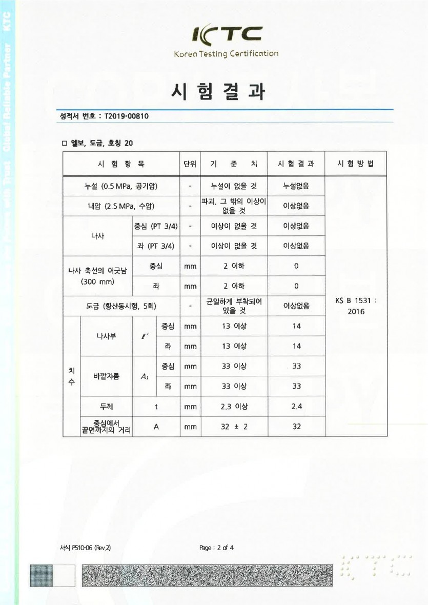 (주)유진피팅 주철관이음쇠 시험성적서