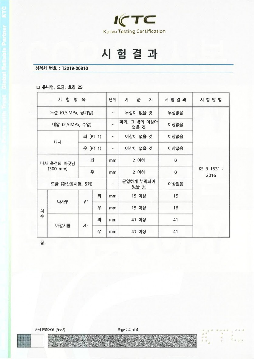 (주)유진피팅 주철관이음쇠 시험성적서