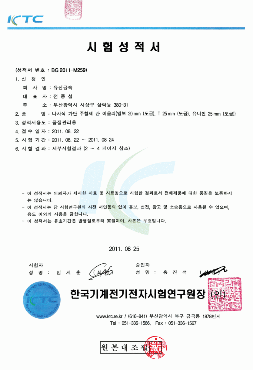 유진피팅 시험성적서